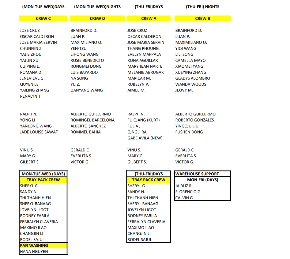 YOUR ASSIGNED CREW LISTED BELOW